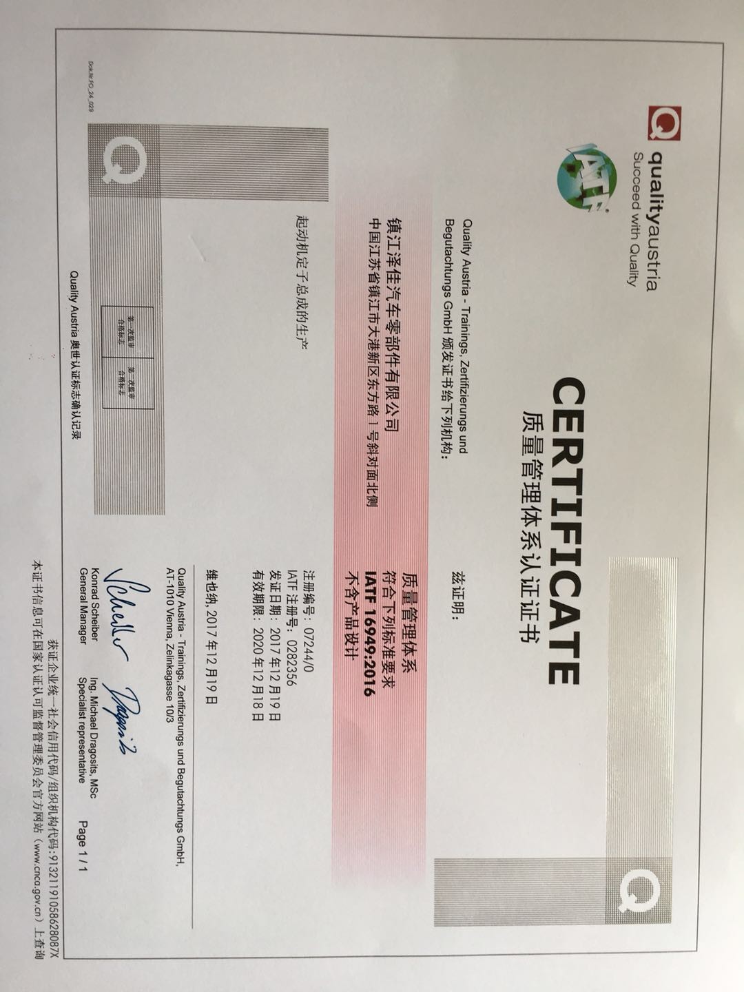 镇江泽佳汽车零部件有限公司创建于2012年,国家高新技术企业,镇江市民营科技企业,公司通过ITAF16949:2016质量管理体系认证,我们致力于开发、制造、营销汽车电机核心零部件和油泵电机零部件,为国内外众多电机厂商、汽车发动机主机厂商提供配套服务以及汽车售后市场服务。公司建立伊始就专注于打造行业内专业的品质,现拥有国内先进点焊工艺、自动化中频点焊机、真空浸漆工艺、数控车床、全自动绕线机、全自动过桥线下线机、全自动螺钉紧钉机、自动化总装流水线等设备,自动化程度高,合作开发全自动成套定子检测设备和产品在每道环节的质量把控与可追溯,确保产品性能稳定、可靠。